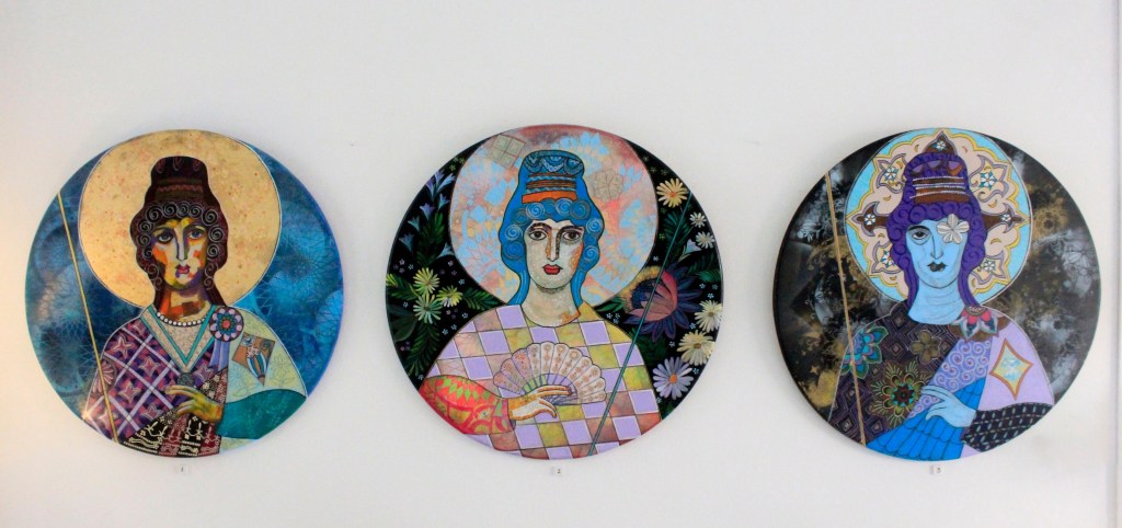 Working in acrylics and mixed media, sometimes enhanced with gold leaf in the Byzantine tradition, Malakhova creates narrative paintings that bridge millennia. Her canvases don’t just depict Tunisia’s heritage — they retell its founding myths, celebrate its continuity, and preserve collective memory through meticulous visual storytelling.